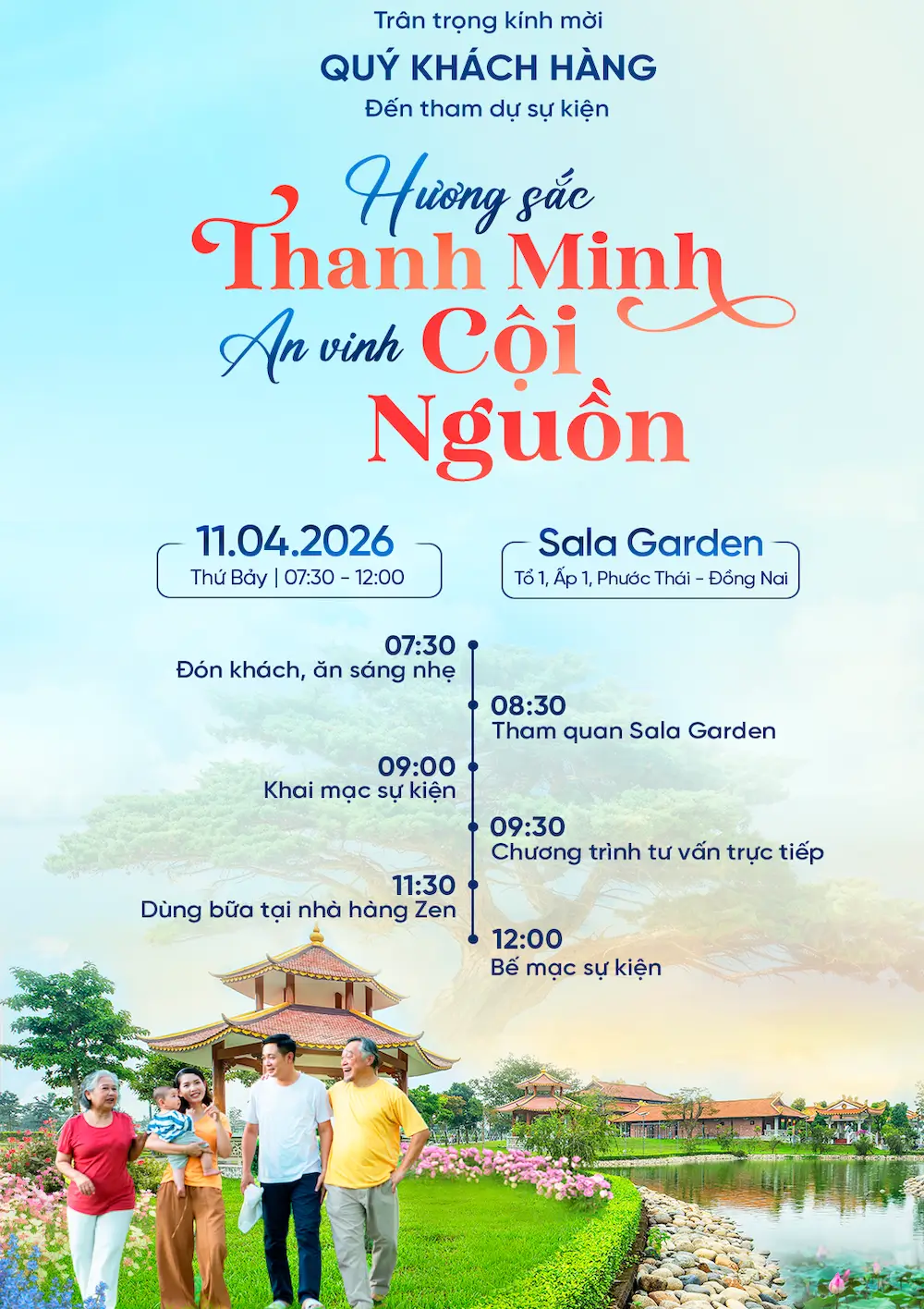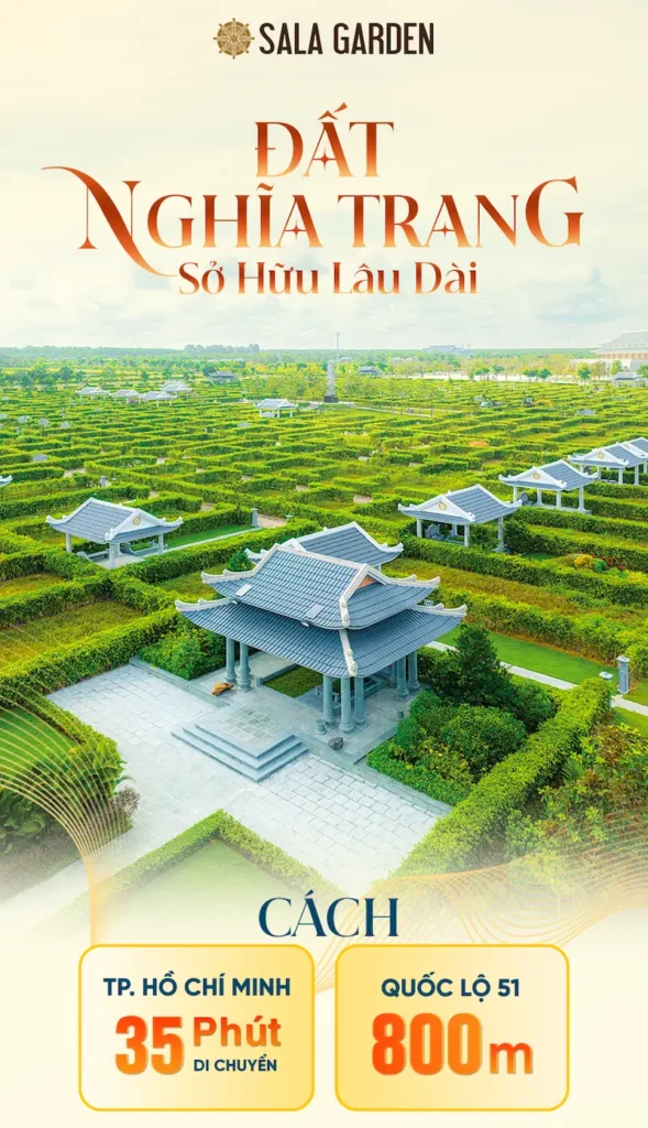 Sala Garden tọa lạc tại địa chỉ xã Tân Hiệp, huyện Long Thành, tỉnh Đồng Nai. Vị trí này cách trung tâm thành phố Hồ Chí Minh khoảng 35 km. Nơi đây không chỉ là nơi an nghỉ, mà còn là công viên tưởng niệm những người đã khuất, là nơi các thành viên trong gia đình tụ hội về, từ đó hình thành nên văn hóa viếng thăm, kết chặt sự liên kết giữa các thế hệ với người đã khuất.